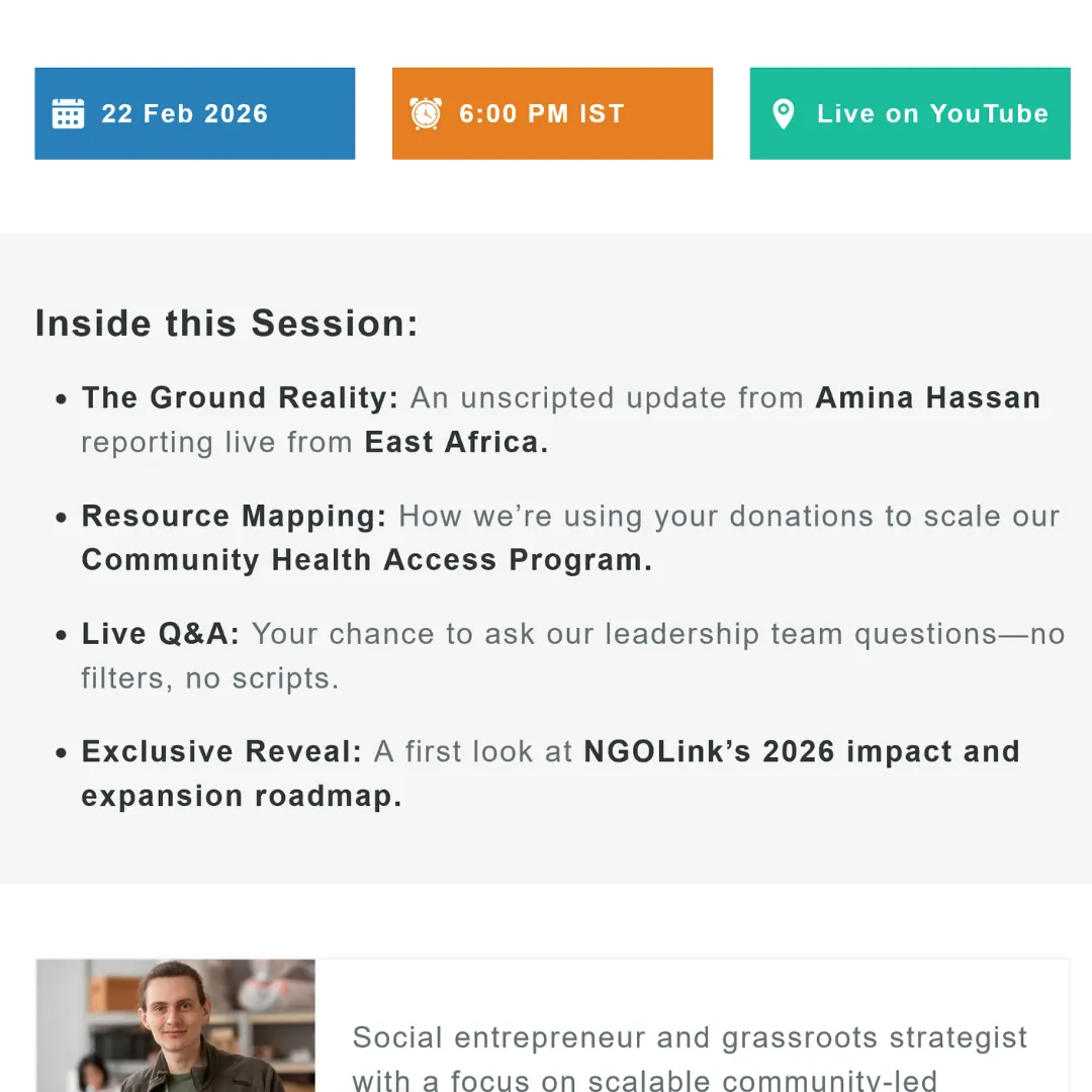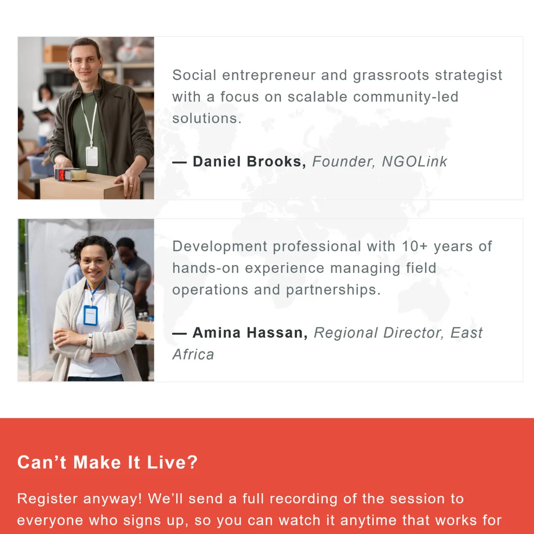 This template is built for Clarity and Conversion. We have optimized the layout to display perfectly on mobile, ensuring that supporters scrolling through their inbox can register for your Zoom, YouTube Live, or Facebook Live event with a single tap.